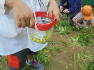たくさん拾って満足していた様子です。幼児期に味わうこのような満足感を大事にしていきたいものです。