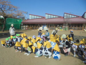 3学期なので、年中年長は予告しないで遊びや活動の途中に訓練を行いました。うめ組さんからは「さっき怖かった」と私にクレームが複数ありました。ごめんなさいね。