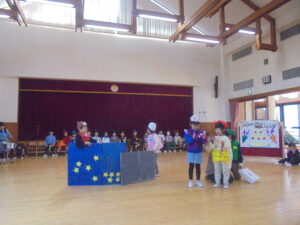 ひので劇場の練習もしました。ホールに年少さんが見学に来ていました。