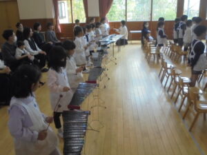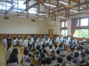 年少さんは「お花が笑った」、年長さんは歌と合奏「ドレミの歌」でした。