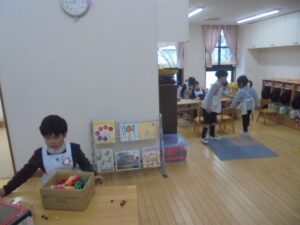 ホールで元気に体を動かしたり、室内でじっくり好きな遊びをしたりして過ごしました。