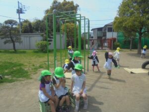 年長さんたちは新しい飛行機遊具に少し慣れてきたかな。
