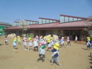 ちょっとまだ難しい子もいますが、何回か練習して、パラバルーンをがんばります。