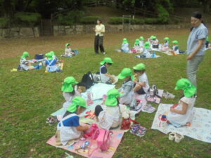 すぐにお腹が空いてしまった年長さん、予定では少し遊んでからお弁当でしたが、先にお弁当を食べることにしました。