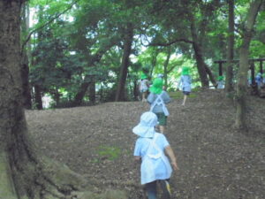 鬼ごっこで走り回ったり、森を探検したりして帰ってきました。