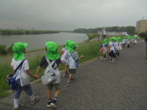 今週もがんばった年長さん、金曜には京成電車で2駅乗って里見公園に園外保育に行きました。