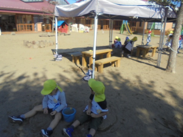 年少さんの追いかけっこ、年長さんの真似なのですが、とてもよく走っていました。