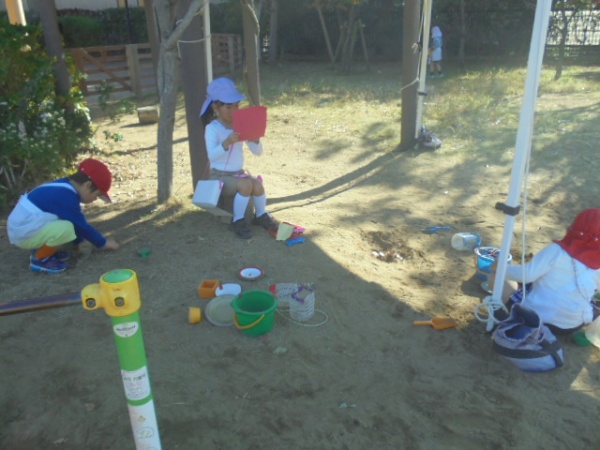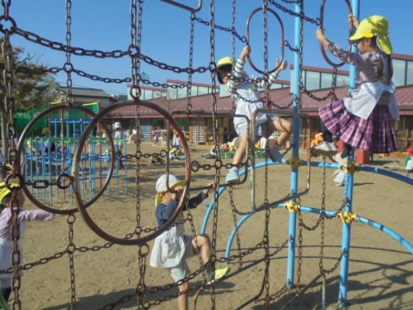 洋服は関係なく、園庭ではみんな元気に遊んでいました。