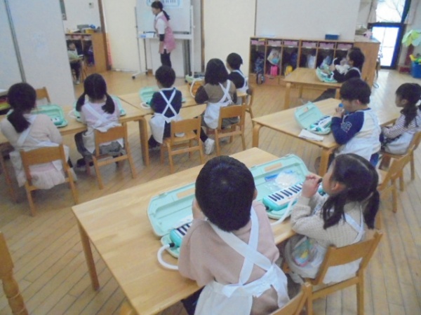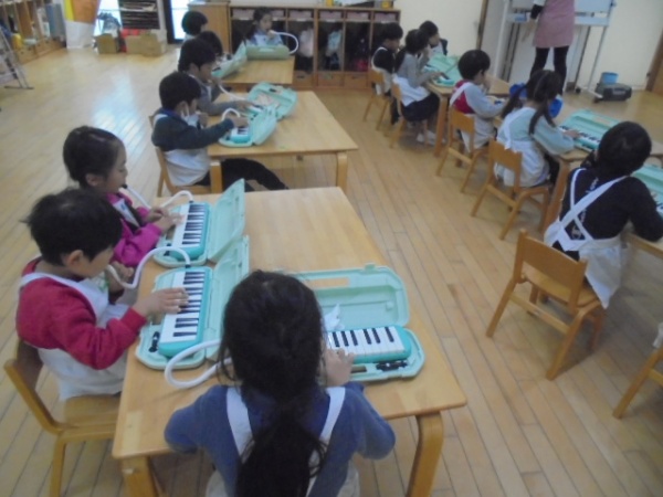 年長さんは、お昼前、メロディオンをしていました。