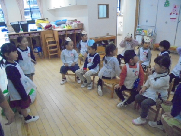 年中さんは絵本を2グループに分けて呼んでいました。